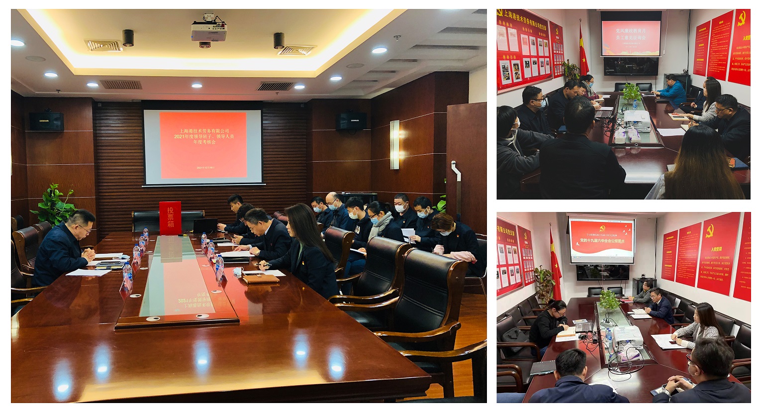 技劳公司深入学习宣传贯彻党的十九届六中全会精神,从“一个根本问题”、“两个确立”、“四个伟大飞跃”、“五个方面历史意义”、“十个坚持”等经验和成就的取得中,深刻领会党的十九届六中全会的重大政治意义、历史意义、时代意义、里程碑意义。领导班子带头学习,坚持原原本本学、融会贯通学、联系实际学,持续兴起学习宣传贯彻党的十九届六中全会精神热潮。公司持续强化政治理论学习和警示教育,严格贯彻落实市纠“四风”树新风警示教育大会精神,巩固学习集团党风廉政警示教育大会重要讲话精神,开展《上海市国有企业党的十九大以来违纪违法典型案例集》中典型案例学习分析,持续推进以案示警、以案为戒,加强警示教育,筑牢廉洁底线。